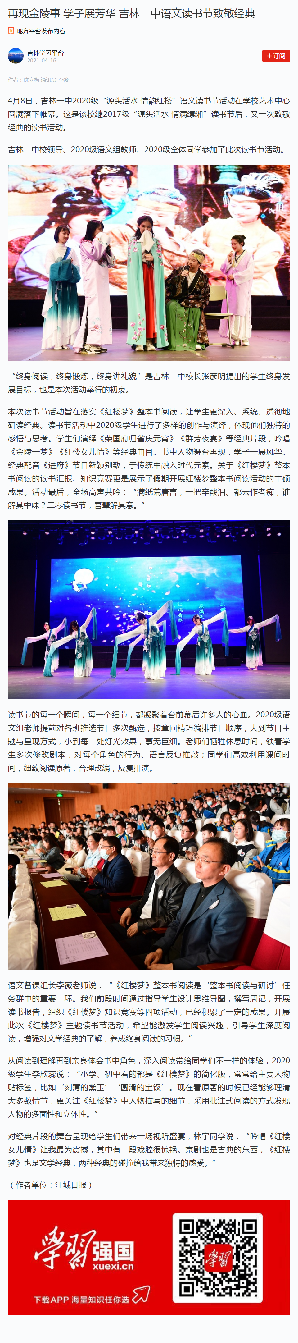 再现金陵事 学子展芳华 吉林一中语文读书节致敬经典