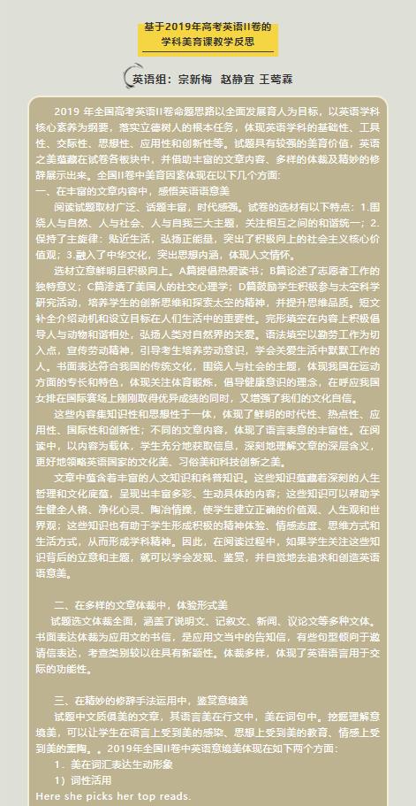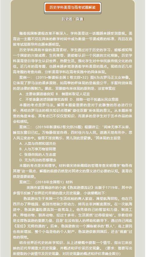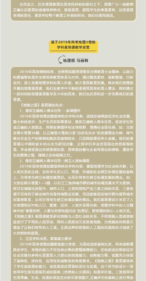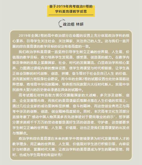 辑志协力 研精致思——基于2019年高考卷学科美育课教学反思